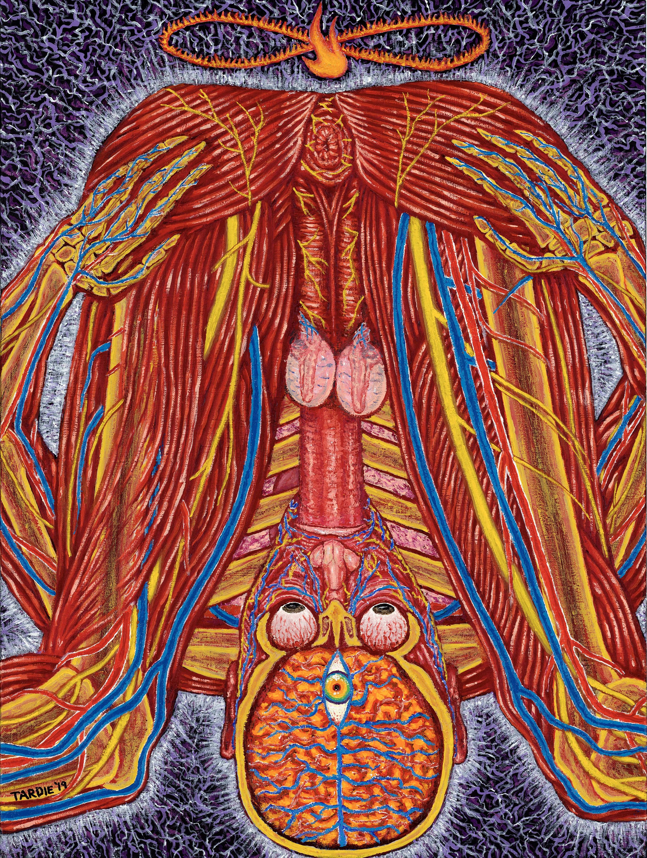 Hah! Wow - that's amazing. In the style of Alex Gray, but with autofellatio - wonderful!