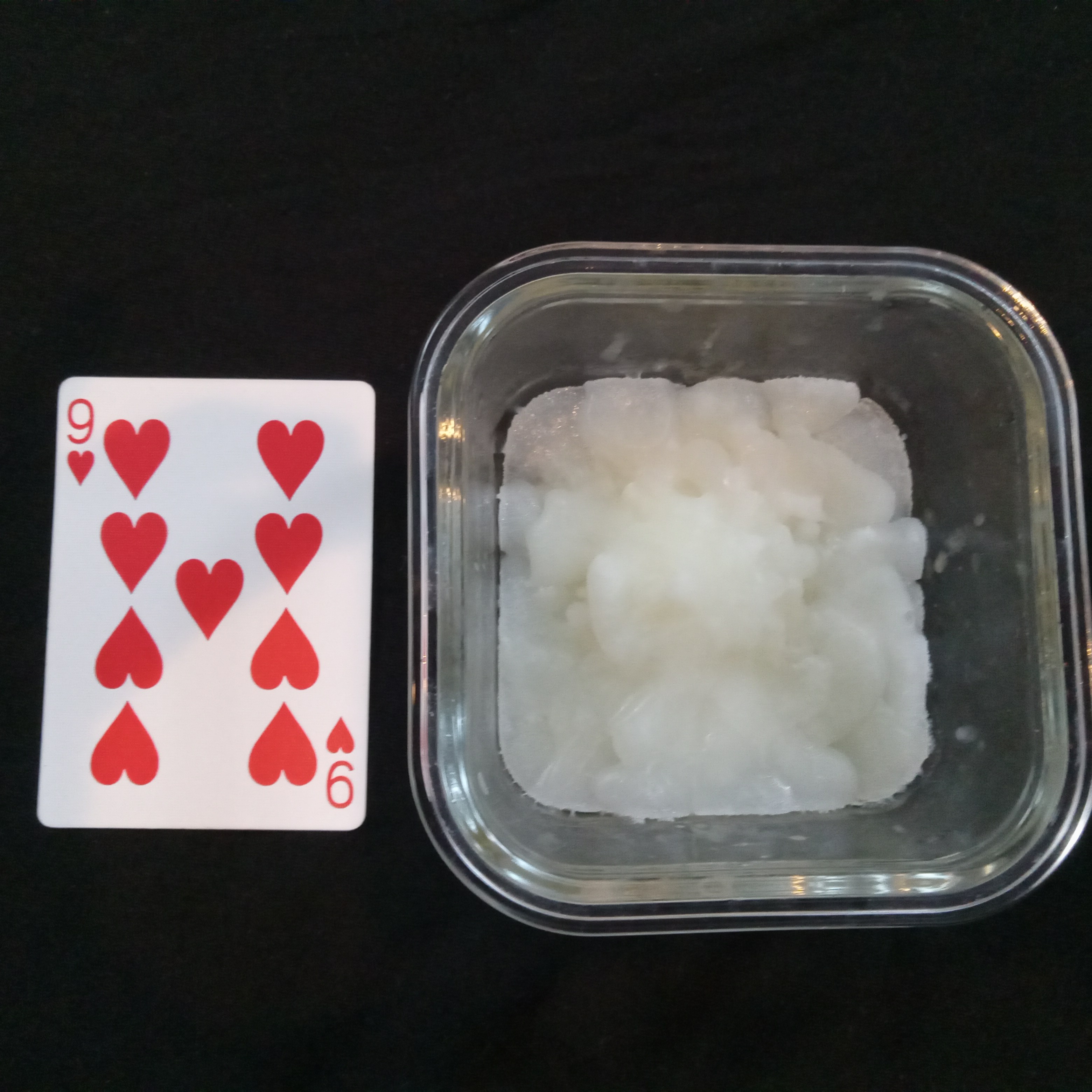 Here's my most recent dessert that I tasted and got all over myself. I used a standard size playing card to show scale. The ladies loved watching it almost as much as I enjoyed playing with it :D