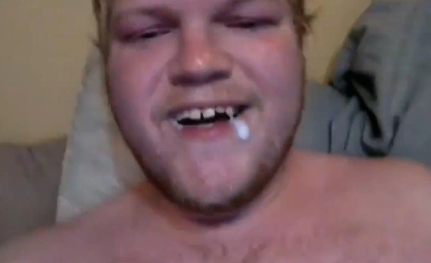 Narcissistic fucker watches himself suck his dick and cum in his throat.